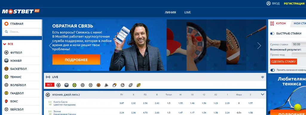 Как видите, все предельно просто даже для начинающих беттеров. И очень выгодно в перспективе. Потому что БК Мостбет может похвастать широкой линией ставок. В том числе Live — в режиме реального времени с параллельным просмотром онлайн трансляций событий. А также множеством других фишек. Позволяющих разнообразить азартный досуг.
