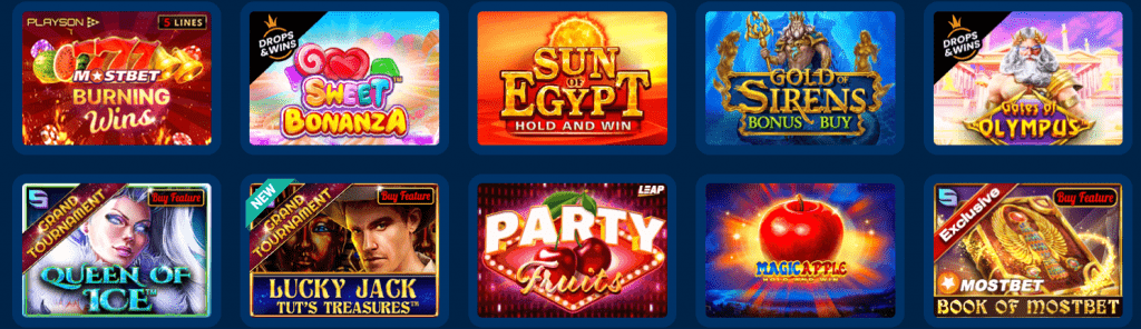 For the convenience of choosing a particular online slot on the official website of the Mostbet bookmaker’s office, the most popular digital slot machines are placed in a separate section called “fast games”. It contains the slots that have been played by the largest number of users in the last few weeks.